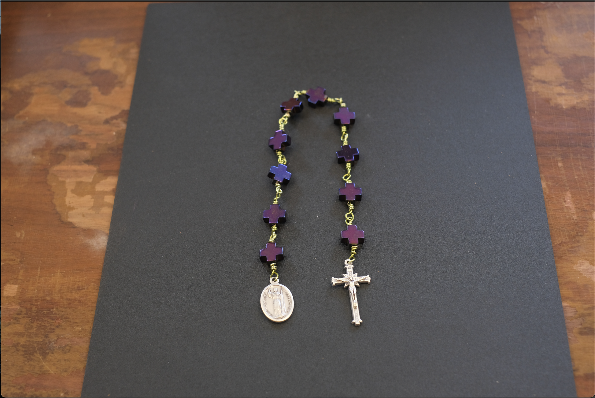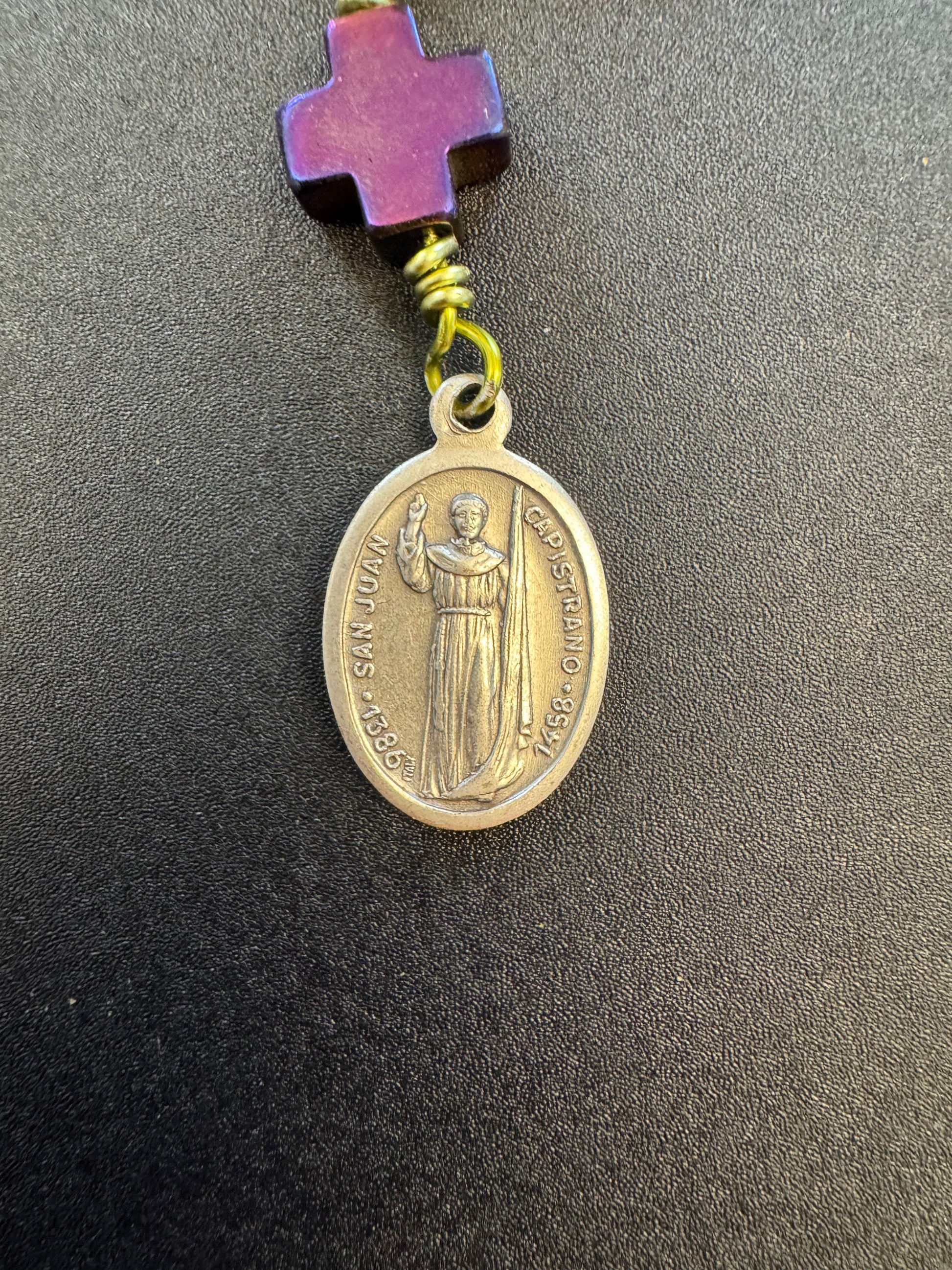 Saint John of Capistrano Purple and Green Hematite Unbreakable Rosary